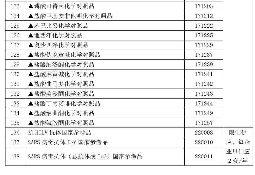 1. *標識品種為本期目錄新增體外診斷試劑標準物質。